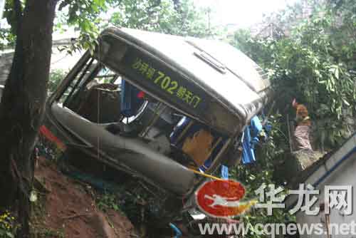 重慶發(fā)生公交車墜橋事故 險砸中輕軌工地(圖)