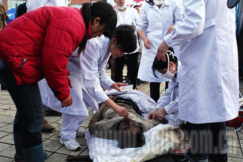 災(zāi)區(qū)現(xiàn)場(chǎng),除了災(zāi)民,就是從全國(guó)各地趕來支援的武警、部隊(duì)和志愿者。他們身著各色衣服,志愿者則臂纏黃絲帶。據(jù)了解,自發(fā)駕車前往漢旺災(zāi)區(qū)支援的志愿者多來自德陽和成都。在救災(zāi)現(xiàn)場(chǎng),記者也看到來自瀘州、上海、貴州等地的醫(yī)療和消防救護(hù)隊(duì)正全力配合當(dāng)?shù)亻_展救護(hù)工作。
