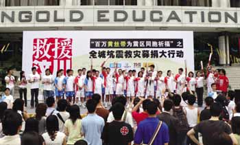 昨日下午2時,由新快報、廣州電臺FM102.7、南方電視臺、新浪網(wǎng)四大媒體攜手廣東省慈善總會,在正佳廣場西北門和廣東新快報社主樓前(天河路533號僑鑫教育大院)兩大主場,舉辦“祈福同胞,愛心飛揚———百萬黃絲帶為震區(qū)同胞祈福之全城抗震救災募捐大行動”;顒舆在廣州崗頂好又多、天河城、江南西-廣百新一城、天河購書中心-維多利亞廣場、正佳廣場、友誼商店-世貿(mào)、荔灣廣場南門-上下九、中華廣場-流行前線、北京路-廣百、新光廣場-康王路、越富大廈等11個繁華地段設50個流動募捐點,廣州青年志愿者協(xié)會還派出超過300名志愿者。