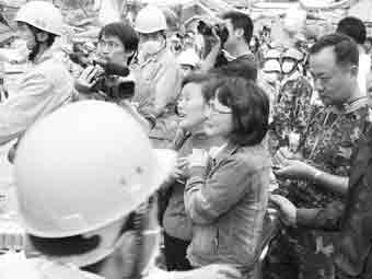 這時記者碰到一位從貴州遠道而來的母親龍金玉,她20歲的兒子蔣雨航埋在映秀一處坍塌的建筑里,生死不明。龍金玉哭著說,她從13日就得知兒子被埋了,新聞里和兒子單位的人一直說道路不通,她已經連續(xù)4天幾乎沒吃任何東西了。15日她和家人到達成都,她再也不能等了,今天早上一個人偷偷溜出來,不管道路通不通,一定要到映秀。