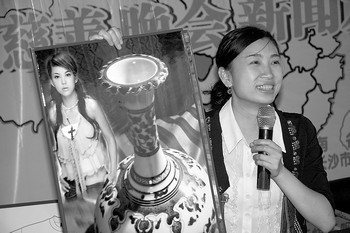 晚會(huì)導(dǎo)演郭翼向大家介紹李湘將在晚會(huì)現(xiàn)場(chǎng)拍賣(mài)的青花瓷。陳飛 攝