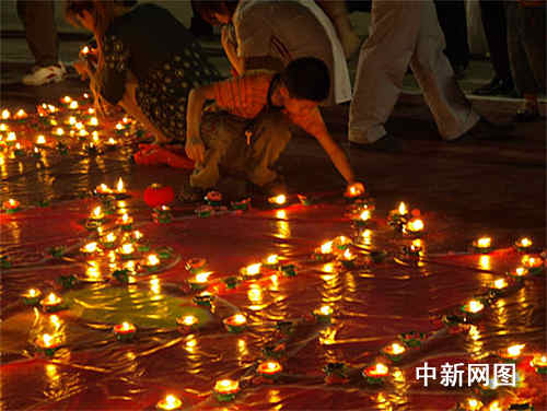在為期三天的的祈;顒又,來自四面八方的數(shù)萬市民自發(fā)的手捧蓮花蠟燭,按佛教儀式捧燭繞塔為受災(zāi)的同胞消災(zāi)祈福。人們在天寧寶塔前,擺出一個(gè)又一個(gè)的心型圖案,為遇難的同胞祭祀,并紛紛為災(zāi)區(qū)捐款。