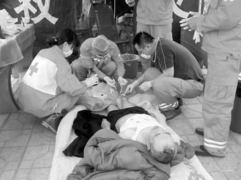 由于前一天余震比較強烈,開放了2天的手術室再次關閉。18日,彭州市人民醫(yī)院只能在一樓騰出一間房作為臨時手術室。在簡陋的條件下,剛做完一場艱苦的手術,中南大學湘雅二醫(yī)院的幾名醫(yī)生十分疲憊!搬t(yī)生,你們受累了,自己要保重!53歲的黃姓女傷員一句貼心的話,讓醫(yī)務人員感到很欣慰。