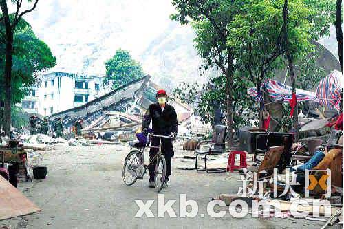 劉相宇第二次進映秀時撿了一輛自行車查看災(zāi)情。