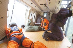 得到前線救援人員通過海事衛(wèi)星報(bào)告的消息后,27日下午,救援直升機(jī)冒著危險(xiǎn),在距地面10米的空中展開搜索。“看,下面有人影!”飛機(jī)盤旋了很久,但因當(dāng)?shù)赜幸慌琶芗母邏壕,飛機(jī)無(wú)法降落,眼看大霧越來(lái)越濃,救援直升機(jī)只得返回廣漢機(jī)場(chǎng)待命。