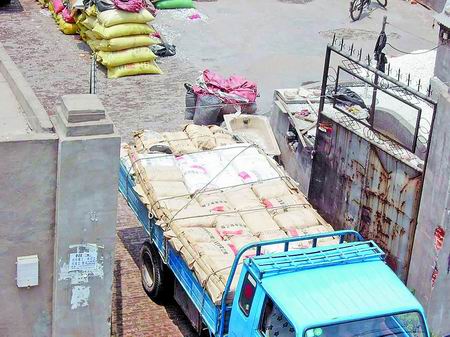 塑料袋一下生產(chǎn)線就被排隊等候的貨車運走了