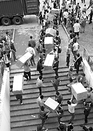 志愿者們聽說這里有活干,一下子來了1200多人,近20條鐵路線的貨場里,到處擠滿了人;疖嚃|站向紅十字會提意見,最后留下200多人做事。