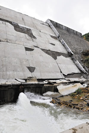 壩體扭曲嚴(yán)重變形