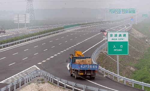 7月2日,一輛施工車(chē)輛從梅廠村入口進(jìn)入京津高速公路。目前,京津高速公路主線道路工程、橋梁工程,以及服務(wù)區(qū)、收費(fèi)站和停車(chē)區(qū)主體也已完工,即將實(shí)現(xiàn)全線通車(chē)。京津高速公路3年前開(kāi)工建設(shè),北起北京朝陽(yáng)區(qū)西直河,終點(diǎn)到達(dá)天津塘沽區(qū),全長(zhǎng)184.4公里。