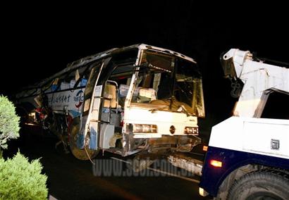 前晚9點40分左右,一輛核準(zhǔn)載47人、牌照為云AL0690的旅游大巴載著41名旅客,從昆明沿楚大高速公路行至K150+550米處,忽然撞毀左右車道之間的護(hù)欄,急速原地調(diào)頭90度,致使車中3人被摔出車窗外當(dāng)場死亡,另1人因傷勢過重,在送往醫(yī)院途中死亡,另37人不同程度受傷。據(jù)了解,車上乘客來自四川宜賓紅太陽旅游公司組的一個赴滇旅游團(tuán),4名死者為3女1男。交警初步查明,車禍系駕駛員超車時處置不當(dāng)所致。