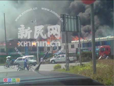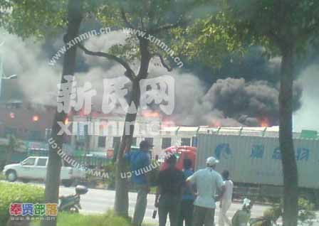 2008年7月17日下午2點(diǎn)30分,新民網(wǎng)接到網(wǎng)友報料稱,奉賢區(qū)齊賢鎮(zhèn)有工廠大火,預(yù)計損失2億,現(xiàn)有50多輛消防車到場。新民網(wǎng)記者電話連線網(wǎng)友楊先生,楊先生稱現(xiàn)場就像原子彈爆炸一樣,天空全黑了。