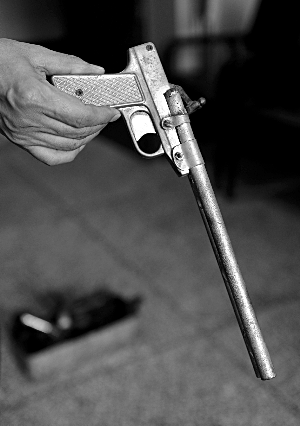 他介紹,平時公安收繳的槍械都保存在一個封閉的庫房內(nèi)。在為幾名記者展示收繳的非法槍支時,一公安領(lǐng)導(dǎo)在擺弄一支自制火藥槍時,槍支意外走火,“鐵砂子”擊中地面反彈后,傷及到了在現(xiàn)場拍照的3名記者。