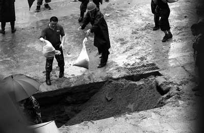 對工程方迅速用混凝土填埋深坑的做法,他說,這樣不妥!叭绻巡槊魇鹿试,應(yīng)及時排除故障,然后再填埋。沒有查明原因,就封填坑口,會給以后的工作帶來不便!薄跻娏(xí)記者魏浩文記者洪波圖