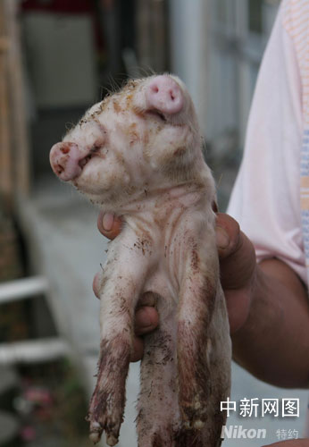 浙江一新生小豬長兩張嘴臉 僅存活16小時(圖)
