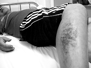 昨日,在積水潭醫(yī)院等待手術(shù)的齊景華說,當(dāng)時(shí)車速太快,他還沒來得及反應(yīng)就被“撞飛了”。