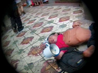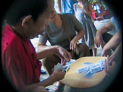 直到中午12點(diǎn)左右,乞討男子悄悄做了個(gè)手勢(shì),綠衣男子立刻跑來(lái)將乞討者背在背上離開(kāi)下河路!苞棥币贿吪臄z,一邊跟著兩人向魚洞車站走去。隨后,兩人坐上開(kāi)往李家沱的公交車。此后,讓人意想不到的情況發(fā)生了,“鷹”看到,兩人吃過(guò)午飯后,乞討者竟來(lái)到李家沱車站邊的東南亞農(nóng)貿(mào)市場(chǎng)門口斗地主。