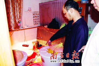 上月初,緝毒民警了解到,黃×新團伙購買了制毒化學品,開始了又一批毒品的制造。8月22日下午,偵查民警向支隊報告,黃×新等4名犯罪嫌疑人齊聚龍窩鎮(zhèn)一居民樓203室,有大批毒品即將制作完畢。旋即,緝毒支隊支隊長黃偉南帶領12位民警分成三組,驅(qū)車趕往龍窩鎮(zhèn)。