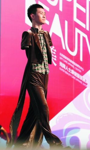昨天,40名普通殘障人士在國家奧林匹克公園祥云劇場上演了一場“時裝秀”。這是國內(nèi)首次為殘障人士舉辦的康健服裝展演。