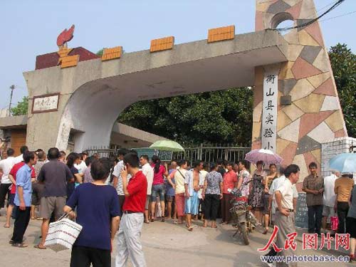2008年9月19日上午七時許,湖南省衡陽市衡山縣城南試驗小學(xué)發(fā)生慘。4名小學(xué)生在教學(xué)樓走廊上玩耍時等待上課,被一名男青年從四樓扔到樓下,1女3男4名學(xué)生受傷,其中一名男生遇到樹枝阻攔,緩沖后落地僅受輕傷。