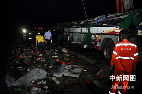 事故現(xiàn)場(chǎng),救援人員正在對(duì)尸體進(jìn)行處理。