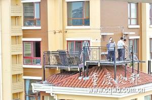 小區(qū)物管公司技術部人員也在現(xiàn)場幫忙,他們說,由于“吊腳樓”地處32樓高空,又懸在一尖角屋頂上,拆除起來難度較大,“預計還要一天才能拆完。”