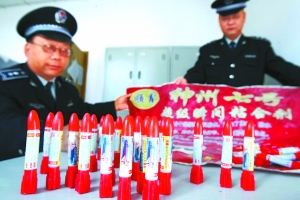 昨天,(北京市)西長安街城管一分隊(duì)隊(duì)員在巡查中,查獲一無照攤販非法兜售的“神州七號(hào)超級(jí)瞬間粘合劑”。經(jīng)檢查,這只是一般的膠水。記者 方非攝