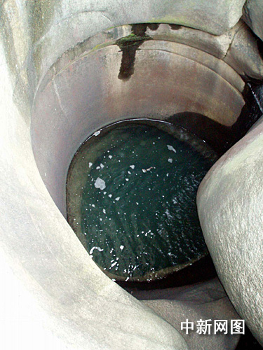 最奇的是,在一個石壁下有一個深七八米、直徑二米有余的石井,“井”壁非常光滑,人把頭小心翼翼地往井底探視,深不見底。不難想象,每當(dāng)山洪咆哮而來時,雷霆萬鈞的水由于受到了石壁的阻攔,狂卷著猶如大水槍往石底下“穿石”而出,年久月深,井越深、越大,從而印證了“水能穿石”的道理。