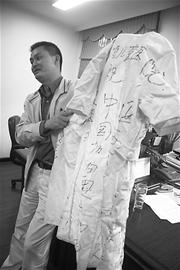 此外,川大華西醫(yī)院還將近百件抗震救災(zāi)醫(yī)療隊(duì)的服裝等進(jìn)行了捐贈(zèng),其中包括來自黑龍江、江西、北京等20多個(gè)省市。廖志林表示,地震后有30多個(gè)醫(yī)療隊(duì)進(jìn)駐華西醫(yī)院醫(yī)治傷員,這次從全國各地郵寄而來的醫(yī)療服,是通過書信號(hào)召他們捐贈(zèng)出來的,希望建川博物館能全面展現(xiàn)抗震救災(zāi)過程中各方面眾志成城的場(chǎng)景,目前已收集完成了20多個(gè)醫(yī)療隊(duì)的相關(guān)物品!耙患奈镆粋(gè)故事,我們?cè)谧龅卣鸩┪镳^的時(shí)候更注重收藏感動(dòng)人心的背后故事!焙涡掠卤硎,薛梟的故事讓無數(shù)的中國人記住了他,博物館收藏其簽名的可樂罐主要是希望為參觀者呈現(xiàn)一個(gè)不可磨滅的記憶,就像給妻子最后尊嚴(yán)的摩托車、為搭板房勞累而犧牲的武文斌的雕像一樣。博物館一直想尋找的是那些飽含故事的實(shí)物,“電視上不是說,有位媽媽為保護(hù)自己的孩子不幸遇難,她在手機(jī)上留下了‘親愛的寶貝,如果你還活著,請(qǐng)記住媽媽愛你’的短信,但苦苦尋覓這部手機(jī),都沒有結(jié)果。讓我們非常遺憾!