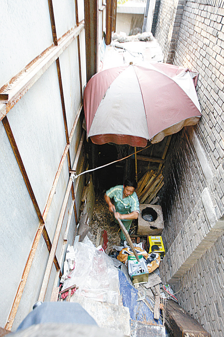 “大雁塔南面的雁塔南路,一個巨幅廣告牌后面有個長方形棚子,我鉆進去后發(fā)現(xiàn),里面是一個臨時搭起的窩棚,是保潔員搭的,他們只是想在遇到下雨下雪時,有個避雨雪的地方。他們說很羨慕有些街道有保潔員道班,可他們這兒沒有,只好自己想辦法找一處避風雨的地方!弊蛉眨晃幻小扒貢r明月”的網(wǎng)友在西安一家網(wǎng)站發(fā)布的帖子引起了記者的注意,從所附的5張照片上可看到,這個搭在廣告牌后面的小窩棚內(nèi),鍋碗瓢盆俱全,還有床鋪,這個簡陋的小窩成了保潔員臨時的“家”。這位網(wǎng)友說拍到這組照片后心里發(fā)酸,在繁華都市的背后生活著這樣一群“城市美容師”,靠著堅毅和吃苦,頑強地撐起全家的重擔。