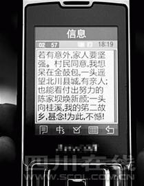 短信寫著:“若有意外,家人要堅強。村民同意,我想呆在金鼓包,一頭便能望見北川縣城的親人,也能看見付出努力的陳家壩煥新顏……”“我當時是無意翻到的,一直沒有刪。你也太高尚了嘛,咋個就不想下我,光想到工作呢!壁w燕一說到趙海清在住院時獨自寫下的這條短信時,聲音哽咽了。