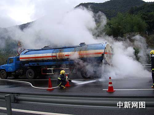 接到報(bào)警后,高速交警寧波支隊(duì)迅速啟動(dòng)應(yīng)急預(yù)案,組織警力以及溪口消防中隊(duì)、奉化市環(huán)保部門、施救單位等相關(guān)部門在第一時(shí)間迅速趕往現(xiàn)場(chǎng)進(jìn)行處置。為了確保安全,高速交警到達(dá)現(xiàn)場(chǎng)后對(duì)事故現(xiàn)場(chǎng)進(jìn)行了交通管制,同時(shí)在甬金高速公路往金華方向溪口出口對(duì)過往車輛進(jìn)行分流。消防車到達(dá)現(xiàn)場(chǎng)后迅速展開施救,用車上的水和泡沫迅速對(duì)泄漏的濃硫酸進(jìn)行稀釋,防止繼續(xù)擴(kuò)散,同時(shí)組織相關(guān)人員對(duì)車上剩余的濃硫酸進(jìn)行撥貨處理。經(jīng)過半小時(shí)左右的努力,泄漏的濃硫酸得到了控制,一個(gè)小時(shí)左右之后路面恢復(fù)了正常通行。