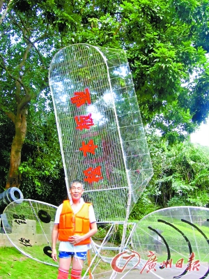 “就是為了實(shí)現(xiàn)兒時(shí)的一個(gè)夢(mèng)。”彭老師說(shuō),他年輕時(shí)就讀重慶一中,當(dāng)時(shí)參加了學(xué)校的跳傘隊(duì),曾想做個(gè)飛行師什么的,沒(méi)想到畢業(yè)后卻成了一名電子工程師,飛天的理想也被束之高閣,但在夢(mèng)里卻經(jīng)常夢(mèng)到自己駕著飛機(jī)飛上藍(lán)天。彭老師說(shuō),他最大的夢(mèng)想就是用人力飛越瓊州海峽。