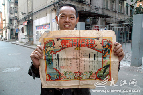 江西南昌發(fā)現(xiàn)1943年的結(jié)婚證(圖)