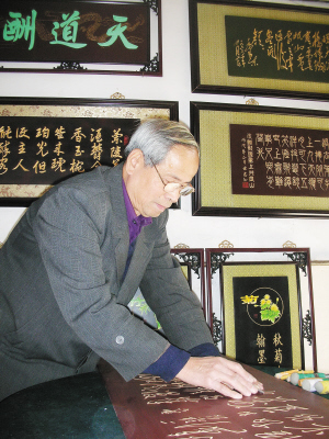 近日,記者在本市西青區(qū)楊柳青鎮(zhèn)三經(jīng)路一間偏僻的小院內(nèi)見到了劉佐忠老人和他舉辦的民間工藝美術作品展。老伴劉汝珍介紹,劉佐忠當過美術老師,大專學的是中文,經(jīng)歷也非常復雜。他做過工程師、經(jīng)濟師,他為西青區(qū)設計所做過加油站的工藝設備設計,退休后苦心鉆研民間工藝美術技藝,癡迷不舍。為了集中精力研究民間工藝美術技藝,他謝絕了高薪聘請他搞工藝設計的優(yōu)厚待遇,自掏經(jīng)費對民間工藝進行研究挖掘搶救,以藝為樂。
