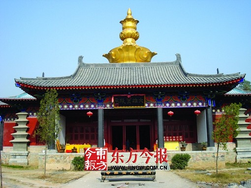 方鼎模樣的山門上方是少林寺方丈釋永信手書的“洞林大覺禪寺”六個(gè)鍍金大字。老人的視線前方,是一座已經(jīng)投入使用的仿印度風(fēng)格的大雄寶殿,大殿前方正在建造的高30多米的兩座鐘鼓樓,已顯氣勢。2008年11月3日上午,位于滎陽市賈峪鎮(zhèn)洞林村的洞林寺正在緊張施工。