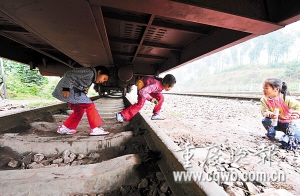 學(xué)生每天都要鉆車(chē)底上下學(xué) 記者 冉文 攝
