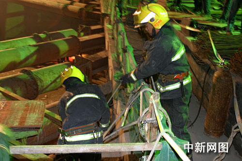 杭州市公安消防局迅速在現(xiàn)場成立指揮部,出動 200余名消防官兵、25輛消防車及移動指揮車、應(yīng)急照明車,組織官兵通宵達(dá)旦開展救援工作。15點(diǎn)34分,首批消防救援力量蕭山中隊(duì)、市北中隊(duì)6輛消防車已到達(dá)現(xiàn)場。官兵立即分兩組對現(xiàn)場進(jìn)行搜索,對坍塌區(qū)域內(nèi)車輛進(jìn)行逐一搜查。另一組在施工坍塌區(qū)進(jìn)行現(xiàn)場搜救被埋壓,并成功救出多人。由于工地結(jié)構(gòu)性坍塌造成自來水鋼管斷裂,大量水涌出淹沒事故現(xiàn)場。鑒于當(dāng)時水位較高且部分車輛已被完全淹沒的狀況,消防部門立即安排特勤一中隊(duì)2名蛙人攜帶水下照明燈具深入水下,對被困人員情況進(jìn)行再次搜尋,并對倒塌區(qū)域水深度進(jìn)行實(shí)地測量。同時先后調(diào)集20臺手抬泵,在坍塌區(qū)域周邊搭建抽水平臺進(jìn)行作業(yè);另調(diào)集15臺潛水泵、6臺泥漿泵實(shí)施高密度不間斷抽水作業(yè)。