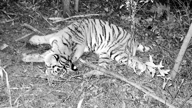 9月8日上午,黑龍江省東方紅林業(yè)局居民到東林林場(chǎng)撿山核桃,在位于林場(chǎng)1林班的地方發(fā)現(xiàn)一具東北虎尸體。接到報(bào)案,林區(qū)公安局立即趕赴現(xiàn)場(chǎng)。經(jīng)勘查發(fā)現(xiàn),被害的老虎是一只野生成年雌虎,身長1.55米,加上尾部長2.38米,肩高0.54米,體重97公斤。在它前進(jìn)的方向只發(fā)現(xiàn)了野豬的足跡,說明它在死前仍然在追野豬。地上的虎毛和虎爪的痕跡清晰可見,顯然它在死前經(jīng)過一陣掙扎。從勒在虎頸部的鋼絲套可以斷定,這個(gè)鋼絲套就是導(dǎo)致其死亡的直接原因。經(jīng)鑒定,死去的老虎屬東北虎亞種,系鋼絲套勒頸部窒息死亡。