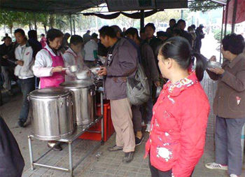 這位網(wǎng)友說,當(dāng)他看到一些明顯是拾荒者和清苦的外來民工模樣的人端著冒著熱氣的粥蹲坐在四周吃的時(shí)候,被感動(dòng)了。