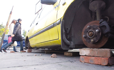 渝中區(qū)停車場(chǎng)的管理人員,為了防止車輛被盜竟想出奇招:將轎車輪胎卸下,然后在四個(gè)安輪胎的部位墊上磚頭。對(duì)此,他們對(duì)這一防盜術(shù)有些自鳴得意:“那些高科技的產(chǎn)品都不可靠,還是這種最科學(xué),小偷再有本領(lǐng),也只能望車興嘆!”