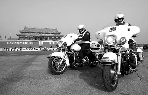 昨日上午,北京市交管局東城交通支隊(duì)帥府園交通隊(duì)三名交警,騎著嶄新的哈雷警用摩托車,開入天安門廣場周邊道路。當(dāng)日起,天安門地區(qū)交警開始騎哈雷巡邏。
