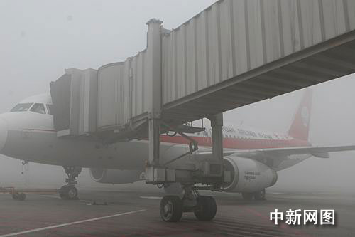 濃霧16日再鎖成都機場,能見度極低,109個航班被延誤。 作 者:呂俊明