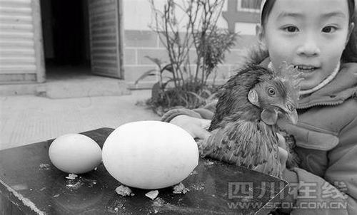 對此,四川農(nóng)業(yè)大學(xué)動物科技學(xué)院教授劉益平說,“一般這樣大的異形蛋是在雞蛋已成型后被輸回去的,很可能是蛋包蛋!