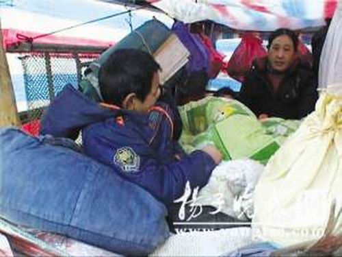 記者聞訊后,隨即趕到現(xiàn)場,3輛“馬自達”被交警攔停在路邊,“馬自達”車主一直在向交警訴苦,讓交警放他們一馬。“馬自達”都是安徽牌照,車廂被油布包裹嚴實,掀開油布,里面猶如臥鋪車廂,鋪著厚厚的被子,幾個人鉆在被窩里聊天。據(jù)“馬自達”司機劉某說,他和另外兩名司機是很要好的老鄉(xiāng),他們都是安徽黃山市歙縣人,近幾年一直在江蘇溧陽打工,主要是幫建筑工地拖運垃圾。大家在溧陽呆得時間長了,小孩們也在當?shù)厣蠈W。春節(jié)將至,他們預備早點回家過年,可溧陽是個小城市,沒有直達他們老家的客車,他們便到常州市區(qū)買票。他們本想坐火車到黃山市,然后轉車去歙縣,可沒想到排隊兩個多小時,等來的卻是“票賣空了”這句話。隨后,他們又急忙趕到常州汽車站買票,還是沒買到票。無奈,他們只好回暫住地另做打算。