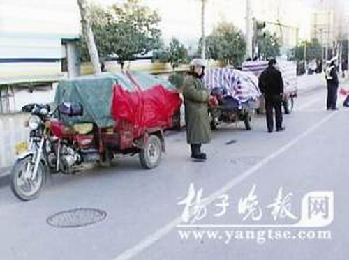 前天晚上,劉某找來兩名老鄉(xiāng)商量回家的方案,想了幾個法子都得轉車,害怕轉車過程中又買不到票,幾個法子先后被否定了!百I不到車票,我們自己騎車回去”,老鄉(xiāng)張某建議。張某說,他們當初到溧陽打工時,“馬自達”就是他們幾個人從老家騎來的,一路上慢是慢了點,但總比買不到車票干等好!斑@樣恐怕不行吧,我們的車子不允許帶人的。”劉某當即提出疑問。最后,三人反復商量,最終決定還是騎“馬自達”帶著家人回老家。為了躲避交警的盤查,他們將“馬自達”車廂用油布包裹上,偽裝成運貨物的車,然后在車廂內(nèi)墊著厚厚的被子,好讓家人舒服地躺著,以免家人受顛簸之苦。