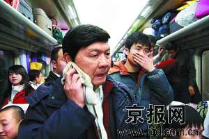 從出發(fā)前5個小時開始,他便張羅著買了一大堆車上要吃的水果以及方便面等食品,并特地買了兩瓶高純度的北京“二鍋頭”和兩個金屬馬扎兒。他告訴我,這是在列車上“過關(guān)”的法寶,“所謂糧草先行,馬扎兒隨身帶”。但當(dāng)走到北京西站廣場,看到里面的“人!,我對老孟的乘車“預(yù)案”有些不以為然。