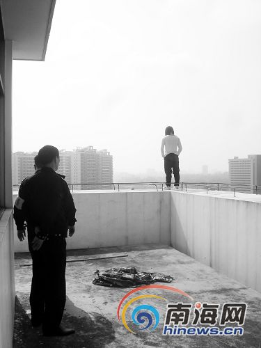 2月5日,阿春聽(tīng)從記者的勸說(shuō),當(dāng)天就從海口返回臨高的家里。結(jié)果,家人與阿春大吵了起來(lái)。阿春在家里呆不住,于2月6日中午從臨高趕到?,隨即來(lái)到?谀仙陈芬粭澊髽堑臉琼,站在樓頂?shù)倪吘墱?zhǔn)備跳樓自殺。