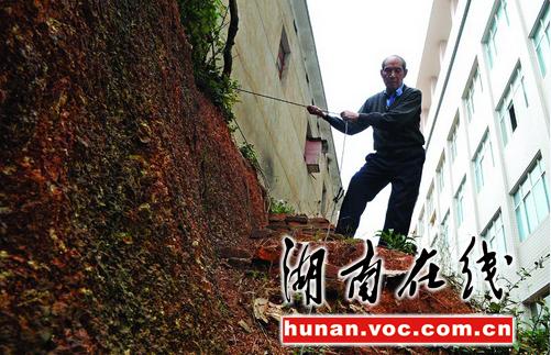 在湖南工程職業(yè)技術(shù)學(xué)院,記者采訪了參與前期拆遷事宜的朱姓工會(huì)主席。談及此事,他也是不斷搖頭。“關(guān)于房屋的補(bǔ)償我們是傷透了腦筋,老吳家不斷加價(jià),學(xué)院無所適從!敝旖榻B說,與老吳家一墻之隔的是學(xué)院新建的教學(xué)樓,因?yàn)椴疬w受阻,教學(xué)樓只好修改規(guī)劃!昂笠屏私5米,看起來歪歪的。”