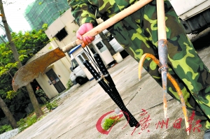 當時親歷的保安班長吳文強告訴記者:“他們來了有四五十人,有說白話的,也有說潮汕話的,手頭上都全部有武器!眳俏膹娬f:“帶頭的幾個有槍,我起碼看到3把長槍兩把短槍,其他人也帶有一些鐵魚叉、關公刀、鐵警棍、水喉管等武器!眳俏膹娛潞笕匀皇趾ε拢骸耙桓鄙劫\進村搶劫的樣子!