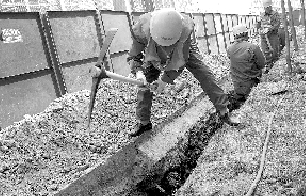 昨日上午,冉屯路清城美苑小區(qū),自來水公司正對該小區(qū)庭院管網(wǎng)重新鋪設管道,原因是該小區(qū)目前使用的管網(wǎng)由開發(fā)商出資鋪設,且沒有經(jīng)過驗收,入住2年爆管50多次,報修100多次,鋪設的PE管材屬于被禁用產(chǎn)品。